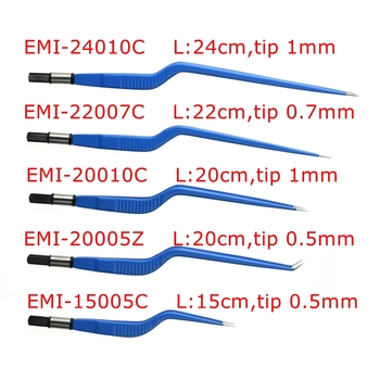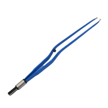 Pinset Forceps Bipolar IEC biru dapat dipakai ulang melengkung untuk Unit bedah elektro elektroda L: 15 cm, ujung 0.5mm